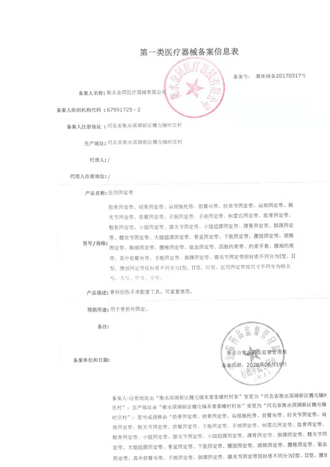 衡水金圆医疗器械有限公司,座落于风景秀丽的自然?;で馑?,北邻京九铁路、石徳铁路,西临106国道,地理位置优越,交利。公司研发各类护理器具、医疗保健用品,目前在衡水市医疗器械品种齐全,规模较大的厂家。 主要产品有:自发热运动护具、医用固定带、腹带、各种医用拐、多功能护理床、产床、高分子支具、骨折固定夹板、夹板、弹力网状绷带帽等。